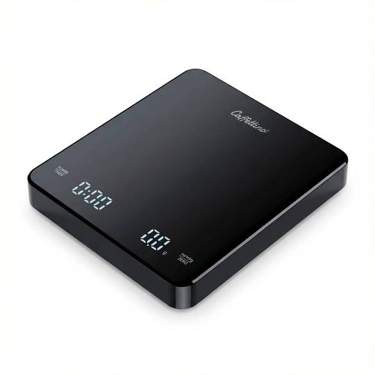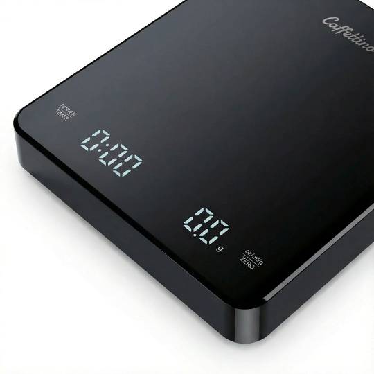Balanza de barista de alta precisión Caffettino , ideal para preparar café con métodos filtrados o espresso. Permite medir con exactitud el peso del café y del agua, asegurando consistencia en cada extracción. Incluye temporizador integrado y superficie antideslizante para un uso cómodo y profesional.